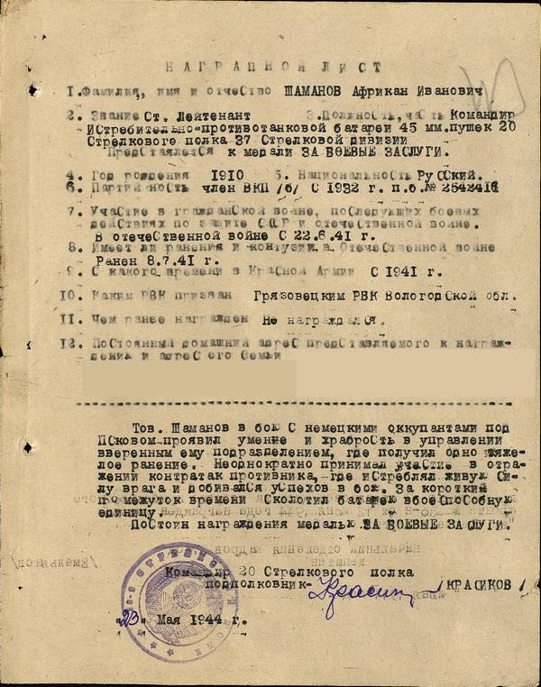 ШАМАНОВ Африкан Иванович